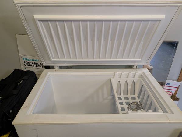 This is a Frigidaire chest freezer that is in great working condition. The dimensions: 23" depth x 35" wide x 34" height.
