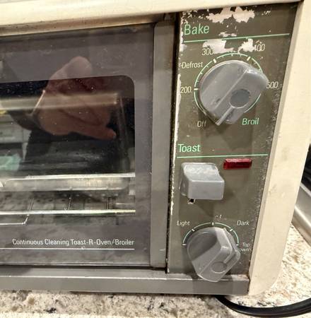 BLACK & DECKER SMALL TOASTER OVEN. DIMENSIONS: EXTERIOR: W14.5 x D9 x H7.5 in. INTERIOR: W 11 x D7.5 x H 3.75 in. IN GOOD WORKING CONDITION. USED LOOK, BUT CLEAN. Thank you for your interest !