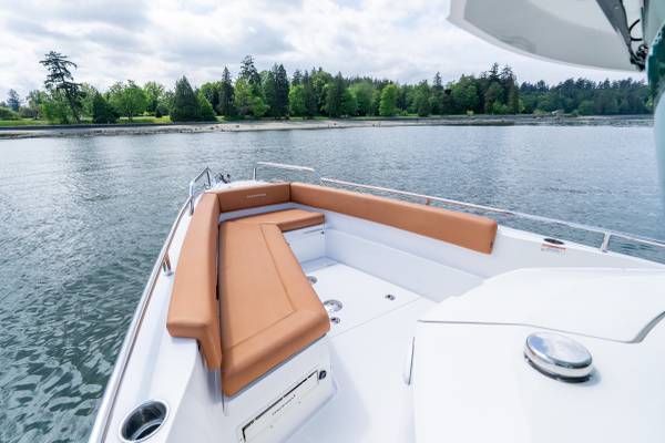 Versatile by design, the walkaround side access and aft-deck is a large flat and practical space that works well for fishing or water-sports activities.