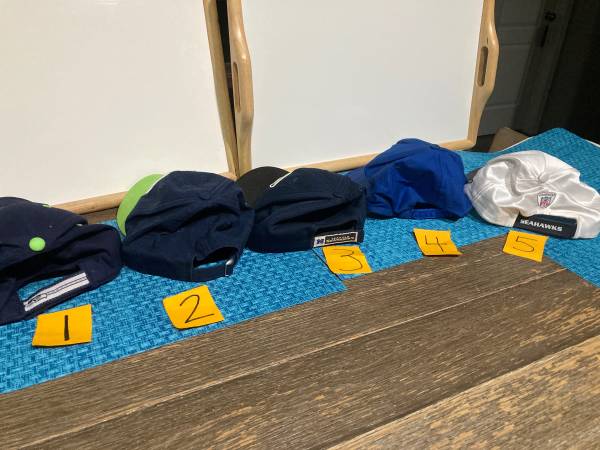 EACH Prices vary starting at $20 and up all 5 for $100 1 NFL Embroidered Seahawk Navy Adjustable $20 2 NFL Embroidered Seahawk Navy & Green New Era 9TWENTY Adjustable $20 3 NFL Embroidered...