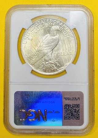 1923 U.S. PEACE SILVER DOLLAR COIN (NGC-Certified "BU") -...