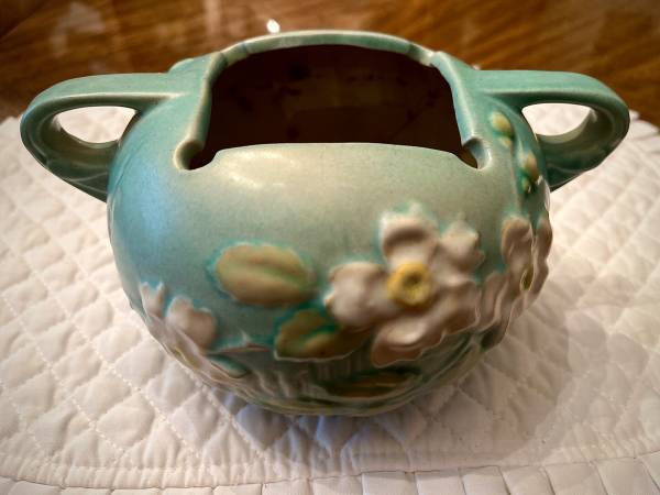 Roseville White Rose vase. Teal/Light blue. No chips, condition is very nice! $75.00. Cash sales only. Pickup is in Bellevue. If interested, please respond with your phone# Lenox, Waterford, Lladro,...