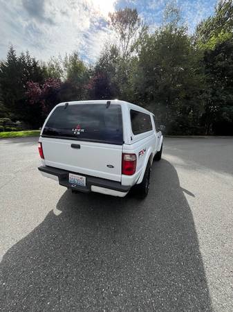2002 Single-Cab V6 3.0L Ford Ranger Edge with camper shell and offroad tires.