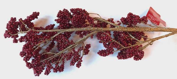 - Gold stem with small glittery red berry clusters - approx. 25" long - $6