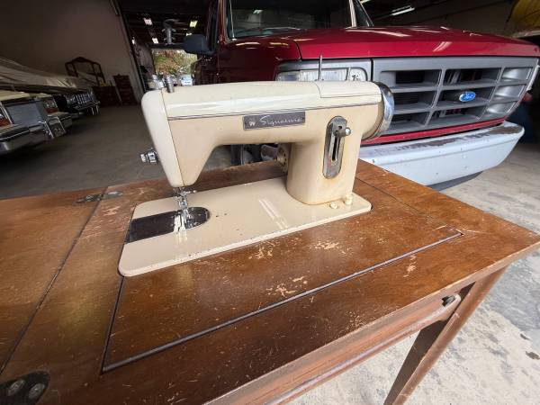 Works but is missing the belt. Measures 34" wide X 17" deep X 36" tall. EG
