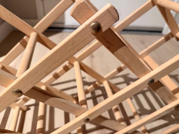 Brand New - Never used 10 Bottle Folding Wine Storage Rack Stand for Countertop or Table, Read Wood Non- smoking home, no pets, no smell. P/u downtown kirkland Cash only