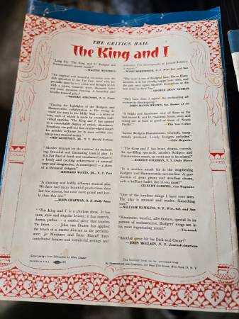 The "King and I" playbill , New York 195X Old playbill I found in my Mom's estate. Going for $15 on ebay + $10.50 shipping. Save the shipping and get it for $15 OBO Ad will be deleted when item is...