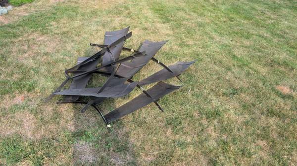 This rebuilt windmill blade is from a local artist who sourced it from an old farm in N. Dakota. It had partially fallen apart, so the artist rebuilt the blades and it's now it as an awesome wall hanging. It could be used in other ways as well. It's made of galvanized iron, over- painted in metalic brown and copper tones, using a faux-metal paint material that added a great deal of depth and color.