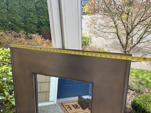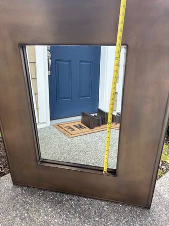 Bronze antique metal frame mirror and wall sconces. Dimensions in pictures.