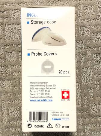 MicroLife Digital Infrared Ear Thermometer. This model only displays temperature in Celsius. BRAND NEW NEVER USED. Comes with 20 probe covers, storage case, and stand. The user manual is in Chinese, but it shouldn’t be too difficult to figure out how to use it. From healthy, smoke-free, pet-free home.