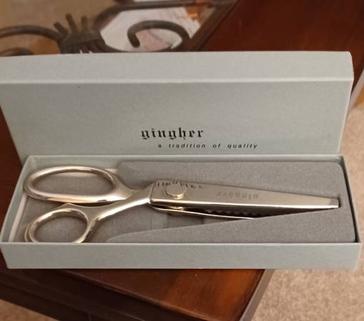 Never used vintage Gingher pinking sheers in the original box. Excellent condition!