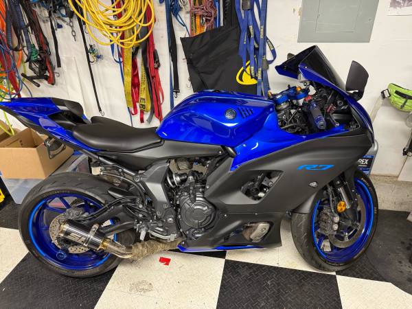 Clean straight fast tight R7. Carbon pipe, air intake, tuned, solo seat, anodized triple , grips, flush mount signals, fuel quick connect, etc ,