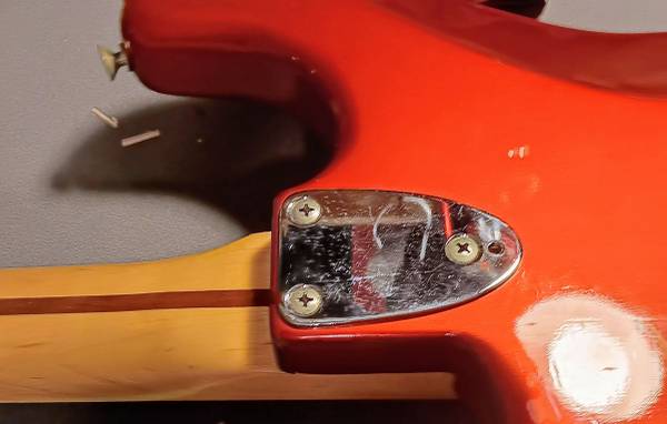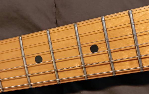 Made in Japan in 1981, the Silver Star was Tokai’s mid-range version of the CBS era Fender Stratocaster. Large headstock with a bullet truss and tilt adjuster on a three-bolt neck plate. It weighs 3.4kg’s. Alder body with an aged Candy Apple Red finish, one piece maple neck with a comfortable rounded C profile (40mm nut width), 21 fret rosewood fingerboard. Loaded with the original Tokai SS-HOT alnico pickups.