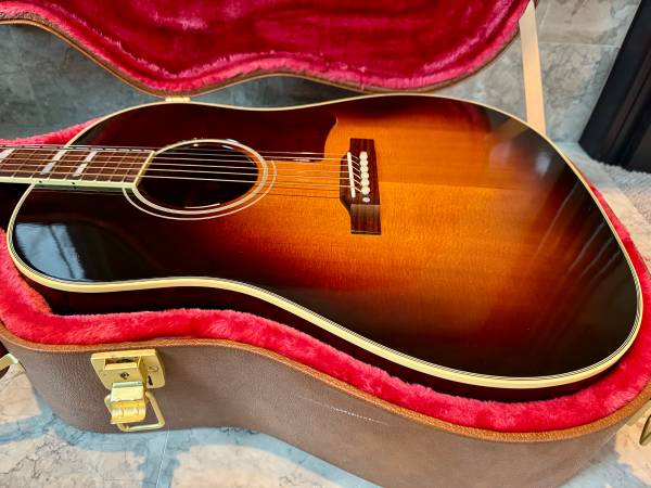 I’m the original owner of this 2021 Gibson Southern Jumbo. I purchased it new at Thunder Road in Seattle. It is similar in feel to a J-45 but has nicer inlays and some other vintage appointments. This one is beginning to sound quite nice. Comes with an LR Baggs Anthem pickup, straplock button and MusicNomad acousti-lok installed.