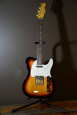 This guitar is based on the American Professional II Telecaster. It was customized with gold hardware, American Vintage II pickups, and vintage wiring. All parts are authentic Fender made in USA (neck, pickups, hardware, etc.), except the body which is Fender made in Mexico.