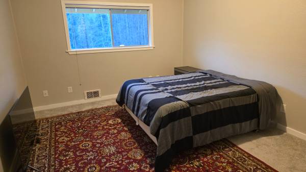 I rent a 3 bedroom house near Maltby, and I have a furnished bedroom available to sublet. This room is huge (12 ft x 15 ft) compared to what you get in Redmond or Bellevue, and it is a house-sharing situation, so you have full access to the kitchen, living room with large fireplace, patio, etc. Also, there is a 5 acre mowed yard so if you have a dog, it's heaven for the pup. Mine loves it. Plenty of parking too.
