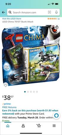 5 LEGO Chima sets. From healthy, smoke-free, pet-free home. 30250: Ewar’s Acro Fighter. Complete with instruction and mini figure. 70107: Skunk Attack. Complete with instruction and mini figure....
