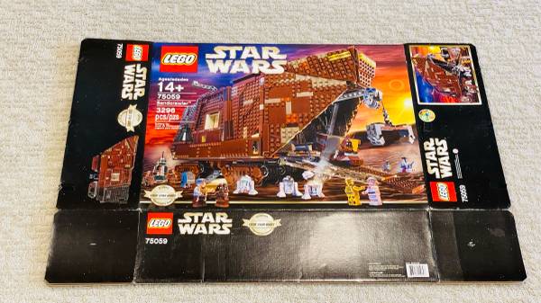 LEGO 75059 sStar Wars Sandcrawler. 100% complete. Adult built and displayed. Comes with all mini figures, LIKE NEW manual, flattened box. From healthy, smoke-free, pet-free home. Asking $550.