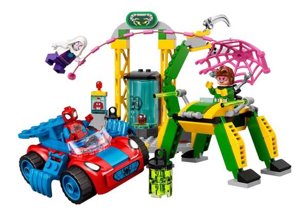 • Dynamic play – Minifigures can climb the scaffold to launch a web attack, while the robotic arm grabs Doc Ock’s energy canisters or an unsuspecting web-slinger