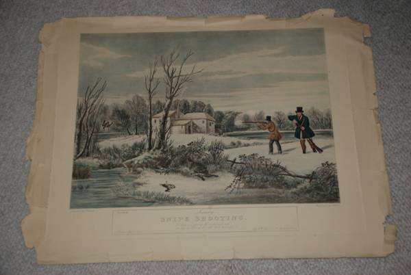 antique original Charles Hunt SNIPE SHOOTING Art Print.