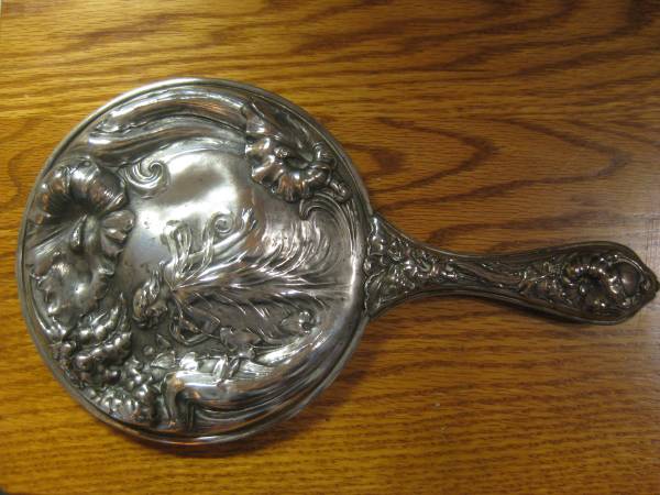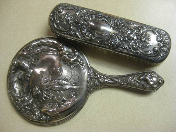 natural bristle brush and hand mirror - gorgeous details in sterling plate