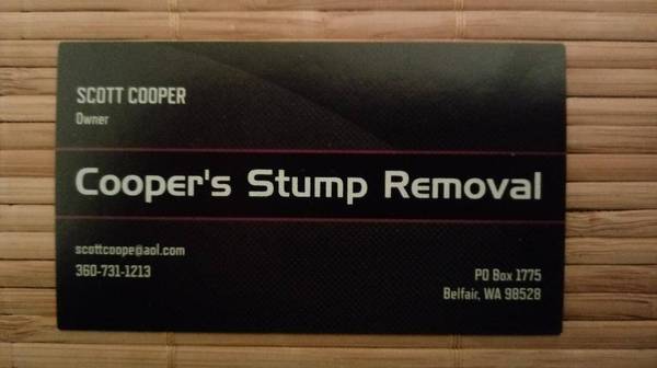 Cooper's, Scott, Scott Cooper, stump, stumps, remove, landscape, stump grinding, emergency work, shrubs, Scott Cooper gig harbor, fox island, vaughn, kpn, key peninsula, port orchard, purdy, silverdale, bremerton, tacoma, university place, fircrest, vashon, bainbridge, bainbridge island, poulsbo, suquamish, kingston, port ludlow, port townsend, chimacum, coyle, belfair, gorst, allyn, union, mason, county, city, seattle, hansville, seabeck, chico, Tahuya, Port Gamble, Dewatto, Anderson Island, Indianola, Keyport, Jefferson, Clallam.