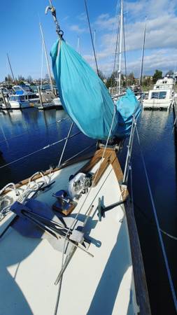 This classic and storied cutter rigged sailboat is a true original. Port Townsend built, the Skookum Boat Company would develop heavy full keel hulls then sell them to boat designers, so no two are alike. This particular model is an Art Monk, Jr. design center cockpit with a very high freeboard for coastal travel. Rigged with a mainsail, fwd genoa and storm kite. Also includes a spinnaker sail. Rudder steering gives it a unique gondula feel that frees up the center cockpit for more entertaining, but a wheel in the cockpit could be installed. Beautiful interior design with little Art Monk eastereggs, like the asymmetric drawers make it for homey living quarters, including its fullsize aftcabin sleeping quarters. The layout provides for a full standing engine compartment with total access to each side of its original Volvo MD-3 29hp. The engine is solidly reliable, though does tend to (white) smoke a bit on start up, esp. cold days. Still starts up right away. The vessel's canvas is at end of life and its batteries are expired (aux batteries currently onboard). Diesel stove for cabin heat, new smart battery charger, shorepower refrigeration among some of its amenities.