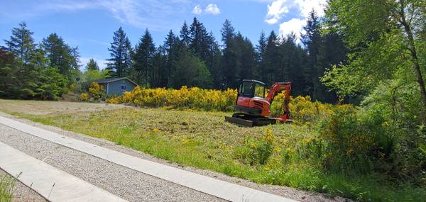 Brush cutting, with mini excavator. Very versatile piece of equipment, I can get the hard to get spots and cut brush, blackberries, scotch broom , cut back brush that is crowding your driveway or fence line can cut holding ponds, ditches, hillsides can cut trees up to 8 inches in diameter everything cut gets mulched. Services offered in Kitsap, Mason, Jefferson and Pierce Counties. Small site prep and excavation projects. Call for a free estimate.