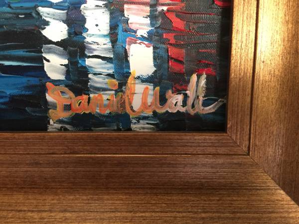 DescriptionDirectly from the Artist we bring you a very rare Original Oil brush painting on Canvas titled Blue Umbrella (on the verso). The piece is signed by Highly Exhibited & Collected Artist Daniel Wall. The canvas measures 36 BY 30 inches. Daniel Wall is the originator of Intense Impressionism, which is characterized by unsurpassed intensity and boldness. Started in the 1980s by Daniel Wall, Intense Impressionist techniques include big, conspicuous strokes created with palette knives, extreme texture with heavy paints, intensified vibrant colors, and exaggerated striking effects of lights. Daniel Wall�s Intense Impressionist landscape and cityscape paintings are unrivalled in their popular appeal and are among the best loved in the world today. Daniel Wall studied fine arts at Florence University of Italy in 1983, where within a few years he established his reputation as a rising superstar artist. In 1990, he visited and studied oriental art at Beijing Normal University and received his Bachelor of Fine Arts degree. From 1995 to 1999 he was a fine art professor at Shandong University and published hundreds of illustrations in journals and books. He also holds a Master�s degree from Georgia Southern University, United States. Daniel Wall has exhibited and won many awards in the U.S., Italy, Japan, China, Germany and Spain. Daniel Wall now resides and paints in Greenville, North Carolina. He is currently one of the most active and recognized artists in cityscape painting in the world. His success is also marked by his highly coveted portraits, watercolors and illustrations. 23 His paintings continue to be collected in the United States and around the world.