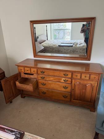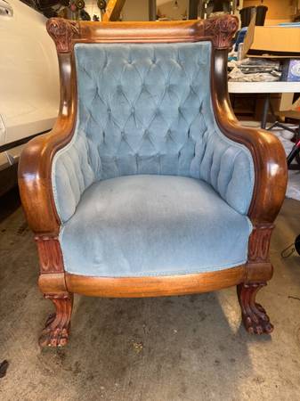 Red velvet chair $200 Blue velvet chair with claw feet $250 Velvet love seat with two chairs $ 300 Lazy boy lift chair $400 Maple dresser and mirror $200