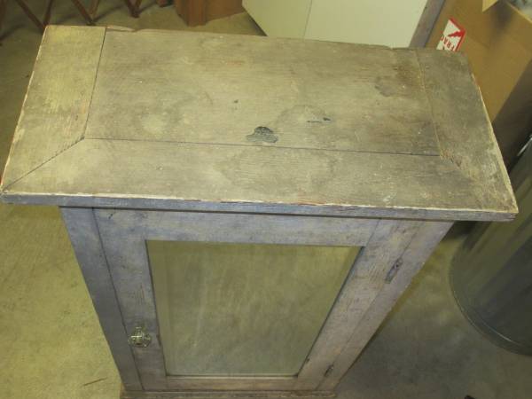 Wonderful, over 100 years old, beveled glass medicine cabinet from a Whidbey Island homestead. Homestead had plumbing, but no electricity. Four shelves and original glass knob. Very heavy - 40 pounds. 23 x 11" glass is very nice. Measurements are 33.5" high x 22" wide x 10.5" deep. Well built. It's solid and a cool piece of history.