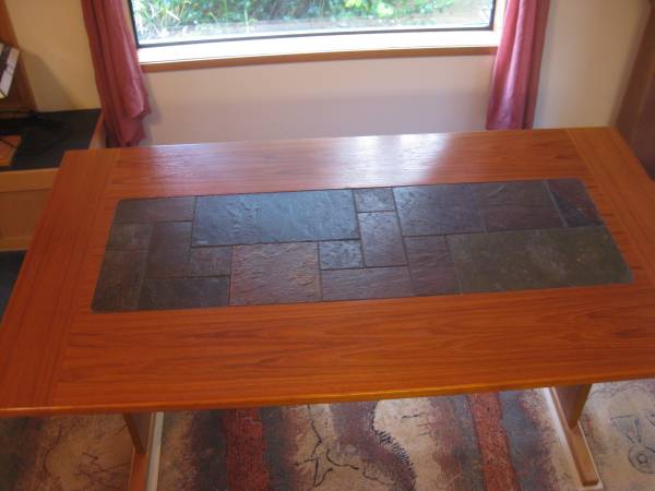 Gangso made in Denmark Modern Teak and slate stone tile dining table 36" x 63" x 29" high