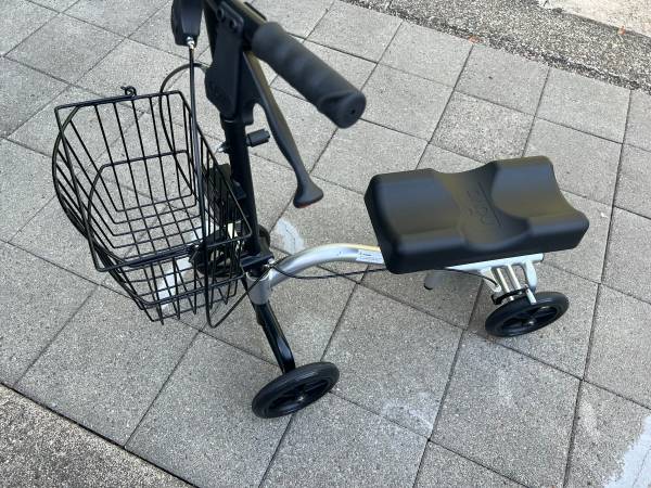 NOVA FOLDING KNEE WALKER SCOOTER, TKW-12 CAP. 300LB, LIKE NEW USED TWICE INDORE ONLY. COMES WITH BASKET.ADJUSTABLE KNEE PAD HEIGHT, ADJUSTABLE HANDLE BAR HEIGHT AMD LOCKING BRAKES.DONT JUST BUY CHEAP ONE WITH NO NAME AND END UP HURTING MORE.THIS IS THE BEST AND NAME BRAND ONE. $200 CASH. Call or Text 70Seven-409-903five.