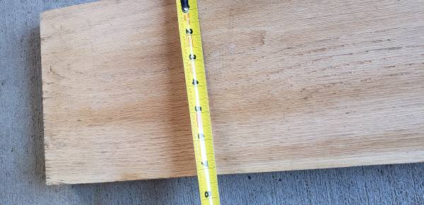 44 1/2" L x 7 1/4" W x 1 1/4" H Solid red OAK board Could be used for floating shelf or your next woodworking project.