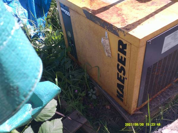 for sale is my Kaeser screw compressor and dryer . it is described as follows . it is 15 horsepower . the dryer is 110 volt . the dryer model is a KRD050 . service hours are at 53,827 . the compressor is a model SM11 . the dryer is 34" wide and 22" deep . comes with temperature gauge , timer control , power disconnect , filters , and regulators , the tank looks to be approximately 200 gallon . CALL show contact info