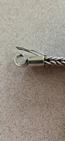 This bracelet is a real beauty... too bad it's too small for me. The bracelet's silver weight is 1.32 Troy ounces and is very solidly constructed. The design is quite unique. Shipping is available.