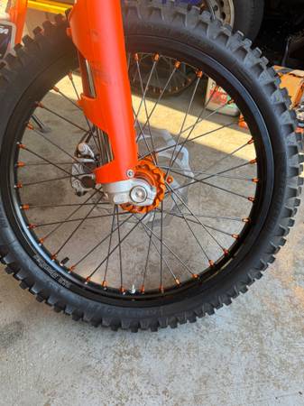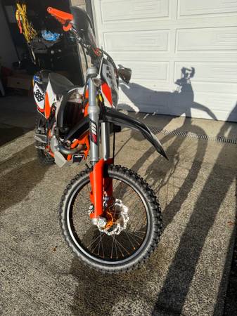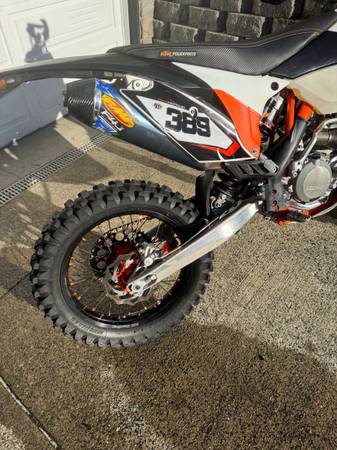 2nd owner, adult owned KTM 500 EXC. Bike is flawless, trail ridden. This is the absolute best bike I have owned by far. Moving on to a two stroke as I do not need all the power anymore. The bike has 105 hours, 2200 miles also has the orange frame. Tabs and ORV tabs good til next year. Has acerbis hand guards, bar risers, spring for a 220 pound rider, jd tuner, FMF full titanium exhaust, seat concepts seats, desert tank, did black wheels and toms of extra parts. This bike is ready to ride. $6500 Washington state title in my name and in my hand.