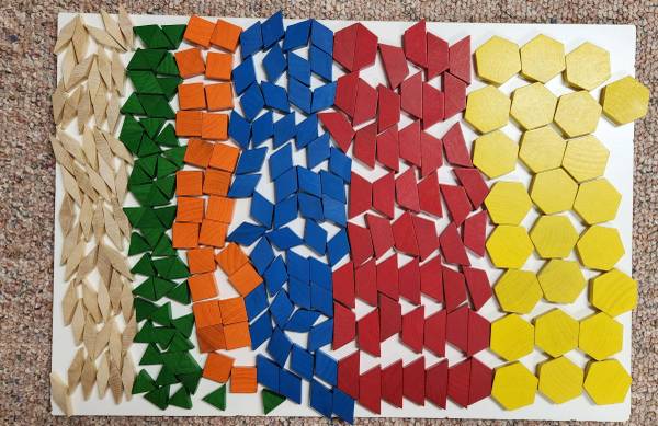 Beautiful wood pattern blocks. They feel light and smooth in your hands making them a delight to work with when creating designs. They slide easily across a flat surface. Often used in Montessori or preschool settings. Fun for any age.