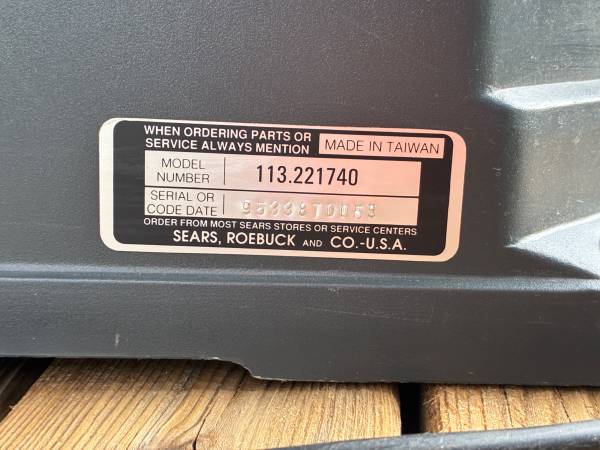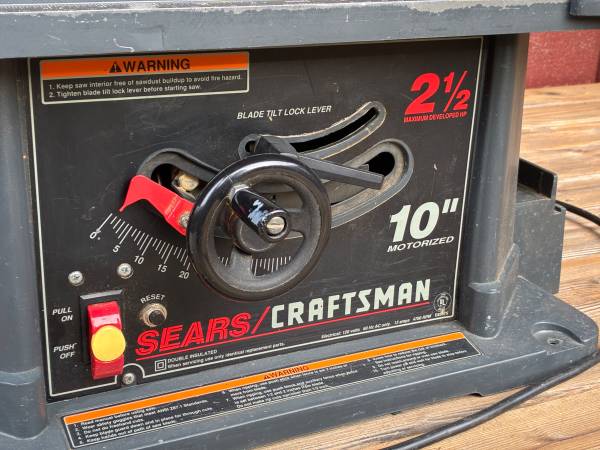 Sears/Craftsman 10" small table saw. 2.5 horsepower. Bought at Sears in Silverdale in 1998.