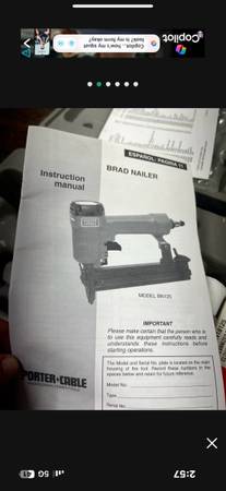Like new condition in carry case with original paperwork & instruction manual- oil & nails included! Pneumatic tool, just needs a new home! Quality brand name Porter cable FIRST $20 takes it...