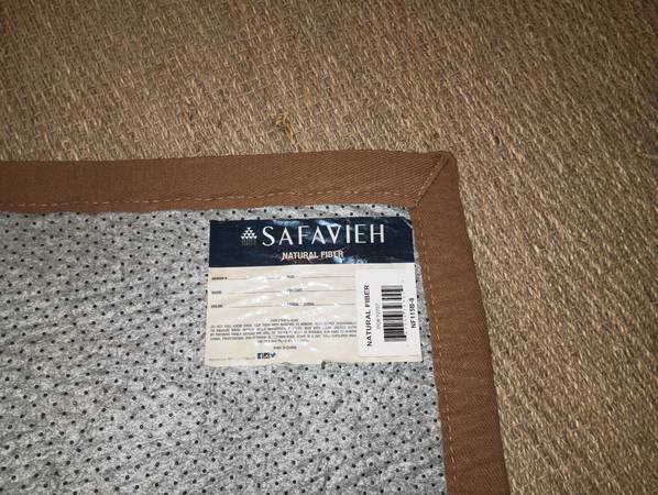 10 ft x 8 ft area rug, durable natural Beige color, natural fiber, approx 3/8" thick, rectangle shape, indoor use, rubber mat on backside. text contact: