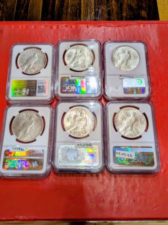 6 Super Peace Silver dollar coins, all NGC certified 1921, 27 S etc - $1,775 (Chehalis)