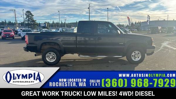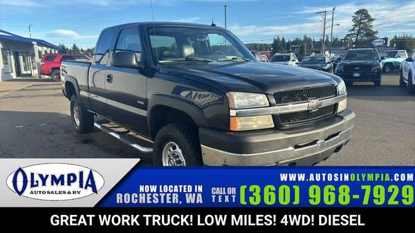 * 4WD                                                                       * ABS (4-Wheel)    * AM/FM Stereo                                                       * Air Conditioning    * Automatic                                                               * Bed Liner    * CD/MP3 (Single Disc)                                             * Cassette    * Cruise Control                                                         * Dual Air Bags    * Dual Power Seats                                                     * Leather    * OnStar                                                                     * Power Door Locks    * Power Steering                                                        * Power Windows    * Premium Sound                                                       * Premium Wheels    * Running Boards                                                      * Tilt Wheel    * Towing Pkg                                                            * V8 6.6L Turbo Dsl Chevrolet Silverado 2500HD LT 2435,2435a,1gchk29184e190739,olympia auto sales,duramax 6.6l diesel turbo v8 300hp 520ft. lbs.,2004 chevrolet silverado 2500hd lt extended cab,used vehicles,used truck,olympia auto sales,rochester,wa,chevrolet,silverado 2500hd,lt,truck,extended cab,diesel,black exterior,gray interior,leather,leather interior,3/4 ton,three quarter ton,4x4,4 doors,4 drs,four doorsPowered by autoZnetwork.com