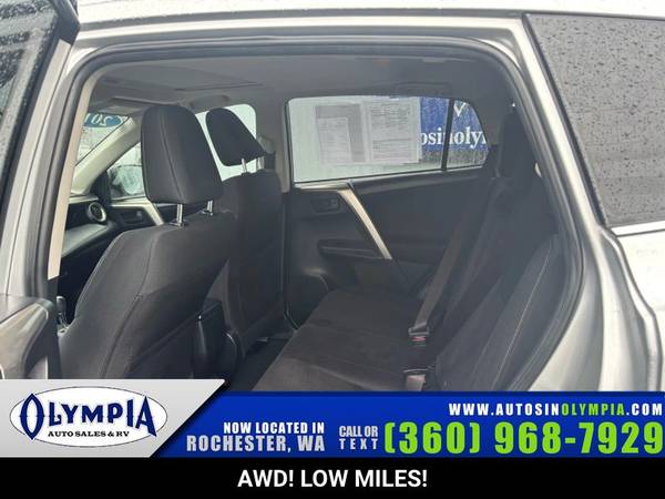 * 4-Cyl 2.5 Liter * ABS (4-Wheel) * AM/FM Stereo * AWD * Air Conditioning * Alloy Wheels * Automatic 6-Spd * Backup Camera * Bluetooth Wireless * CD/MP3 (Single Disc) * Cruise Control * Daytime Running Lights * Dual Air Bags * F&R Head Curtain Air Bags * Fog Lights * Keyless Entry * Knee Air Bags * Moon Roof * Power Door Locks * Power Steering * Power Windows * Rear Spoiler * Side Air Bags * Stability Control * Tilt & Telescoping Wheel * Traction Control Toyota RAV4 XLE 2453,jtmrfrev2dd046555,olympia auto sales,2.5l i4 176hp 172ft. lbs.,2013 toyota rav4 xle,used vehicles,used suv,olympia auto sales,rochester,wa,toyota,rav4,xle,suv,gas,silver exterior,black interior,cloth,cloth interior,automatic,automatic toyota,automatic toyota rav4,6 speed speed,awd,4 doors,4 drs,four doorsPowered by autoZnetwork.com