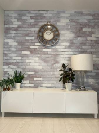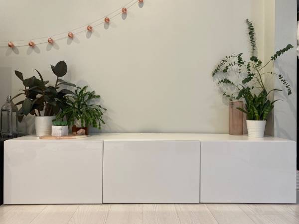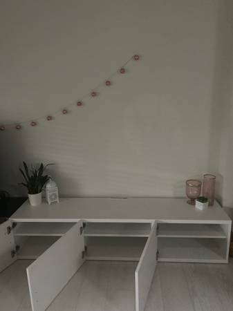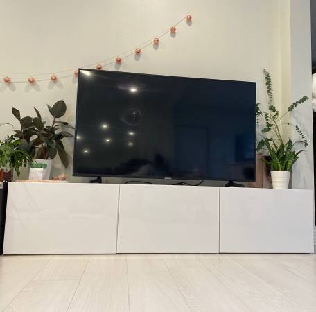 Like new. I have two units available. Price per unit. These units can sit on the floor for a modern minimalist low profile feel. Or higher legs can be added to creat a different look.I also have legs for sale. which you can see the difference in these photos. Or mounted to the wall for a hanging sleek look. 71" long. I can deliver for an additional fee. Originally $500+ each.