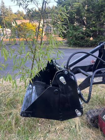 4-in-1 digging bucket attachment for Mini Skid Steer. as-new condition backup/spare, downsizing selling extras. Also have small pallet forks that I’d let go of