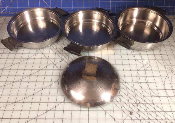 THREE Rena Ware saucepans with ONE lid, 18-8 3 ply stainless steel cookware.