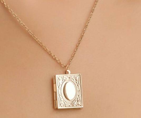 Tiny Book Locket Necklace opens to hold 2 photos for memories.
