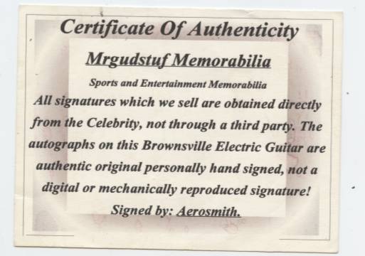 Autographic Guitar signed by Steven Tyler, Joe Perry, Brad Whitford, Tom Hamilton & Joey Kramer of AREOSMITH