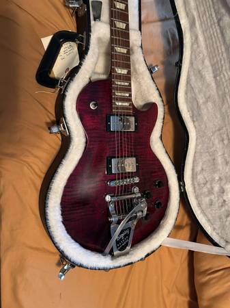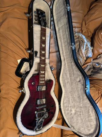 2013 LP studio I put in some Phat Cat p-90s, a bigsby w/ vibramate, string butler, and tusq nut. I have original active pickups and wiring + original tailpiece + yet to be installed roller bridge...